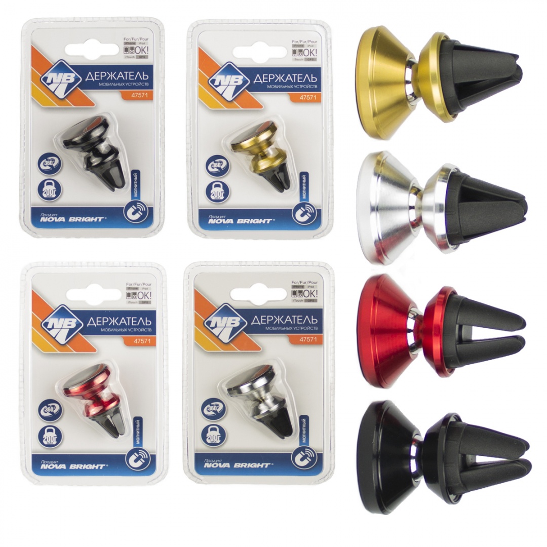 Держатель моб. устройств "Nova Bright" магнитный (круглый) на дефлектор обдува