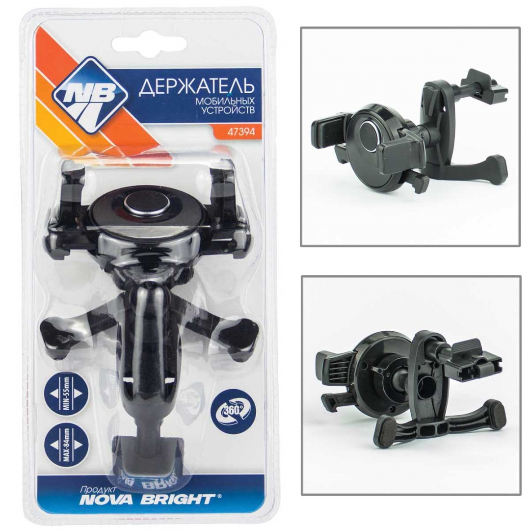 Держатель моб. устройств "Nova Bright" на прищепке с упорами, захват 55-84мм
