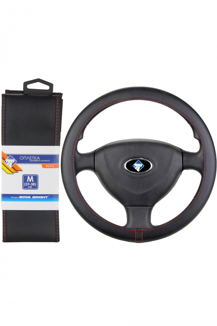 Оплетка рулевого колеса "Nova Bright" (М) экокожа, черная перфорированная, красная прострочка