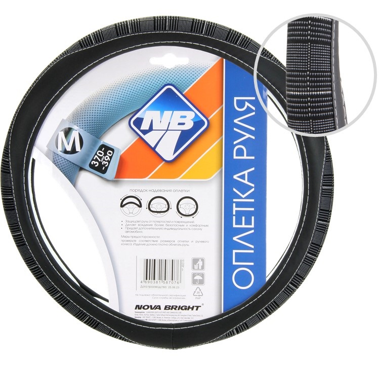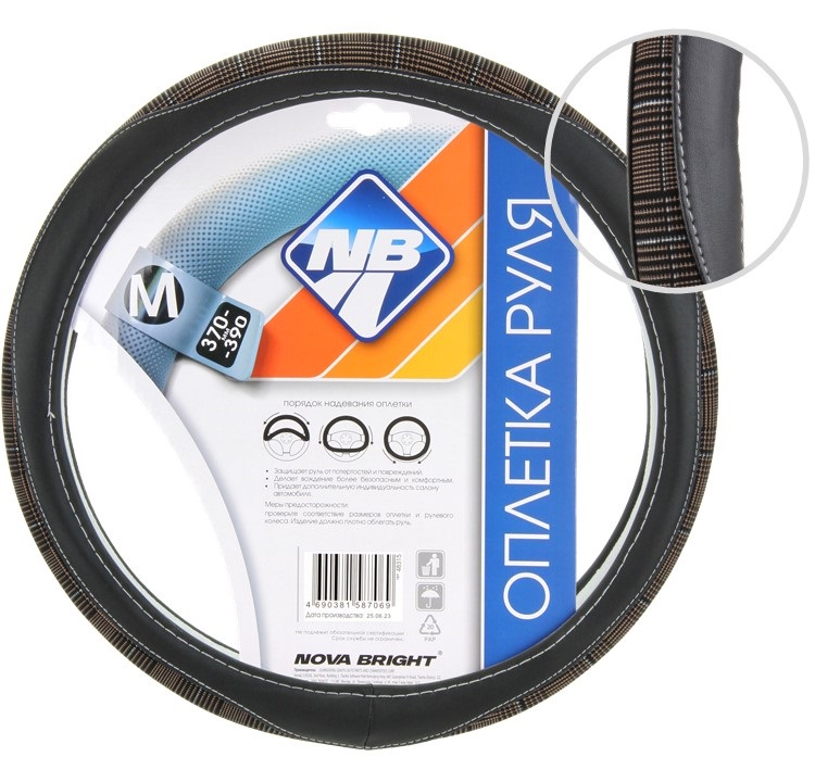 Оплетка рулевого колеса "Nova Bright" (M) экокожа, черная с прострочкой черной ромбиками