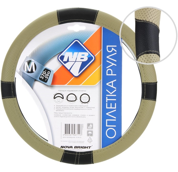 Оплетка рулевого колеса "Nova Bright" (M) экокожа, бежевая с рельефными вставками