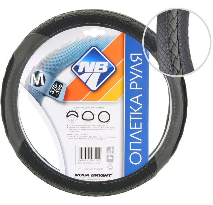 Оплетка рулевого колеса "Nova Bright" (M) экокожа, черно-серая с тисненными и плетеной вставками