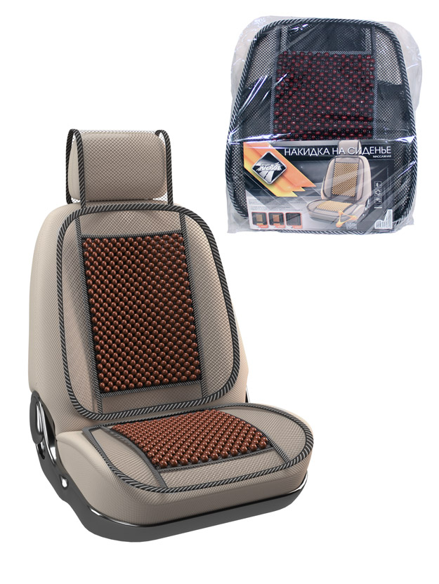 Накидка на сиденье "Nova Bright-fusion" массажная, сетчатая, с подголовником (деревянные вставки, с рисунком, бежевая) (131х51см)