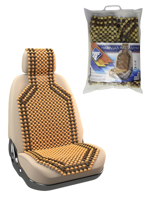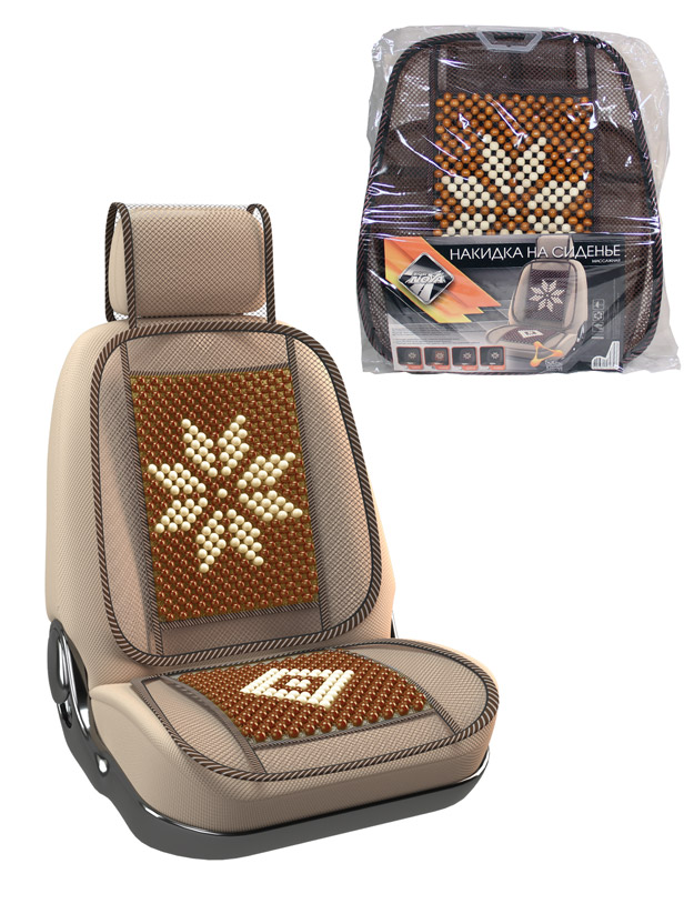 Накидка (коврик) на сидение "Nova Bright" массажная деревянная, бежевая с рисунком, противоскользящая основа