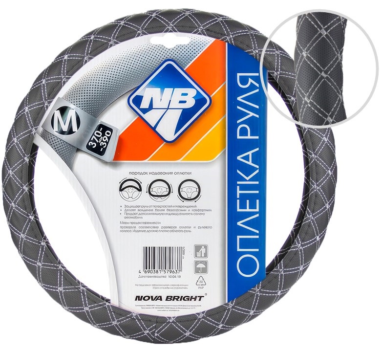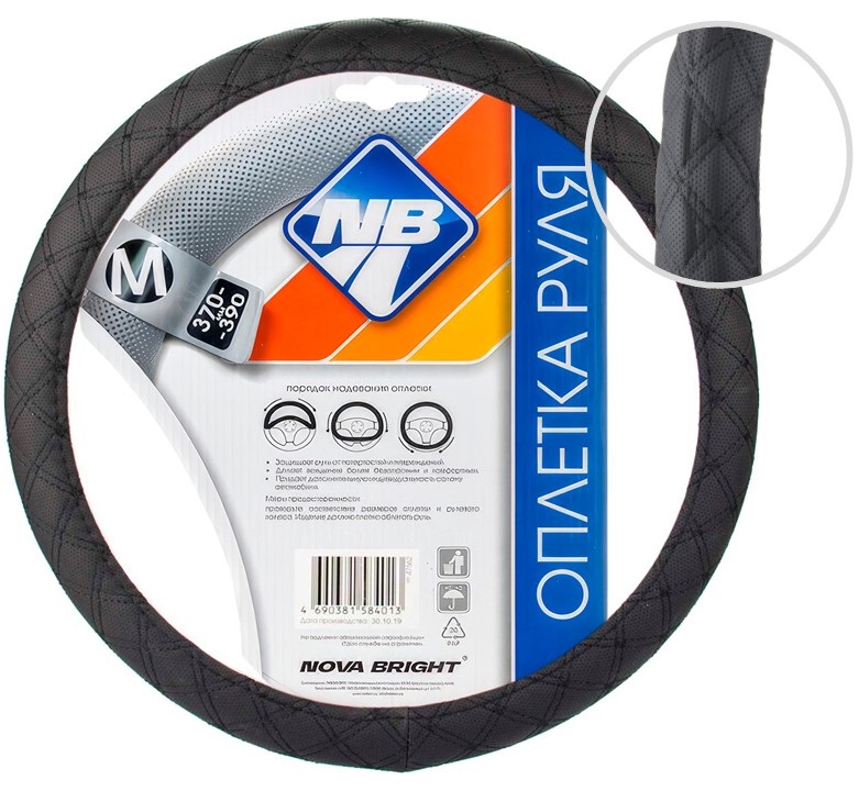 Оплетка рулевого колеса "Nova Bright" (M) экокожа, черная с прострочкой серой ромбиками