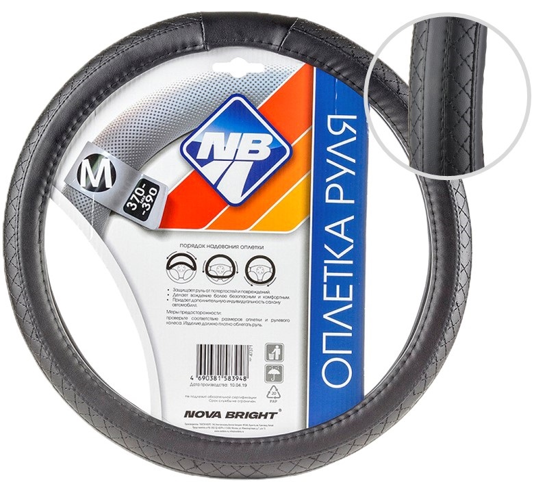 Оплетка рулевого колеса "Nova Bright" (M) экокожа, черная с прострочкой черной ромбиками