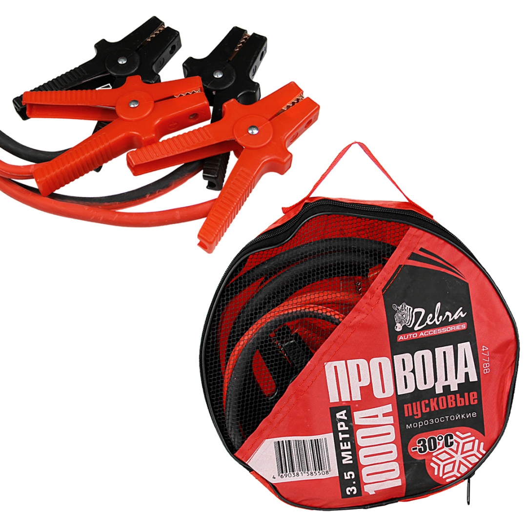 Провода пусковые"Zebra" 1000А в сумке, 3.5м