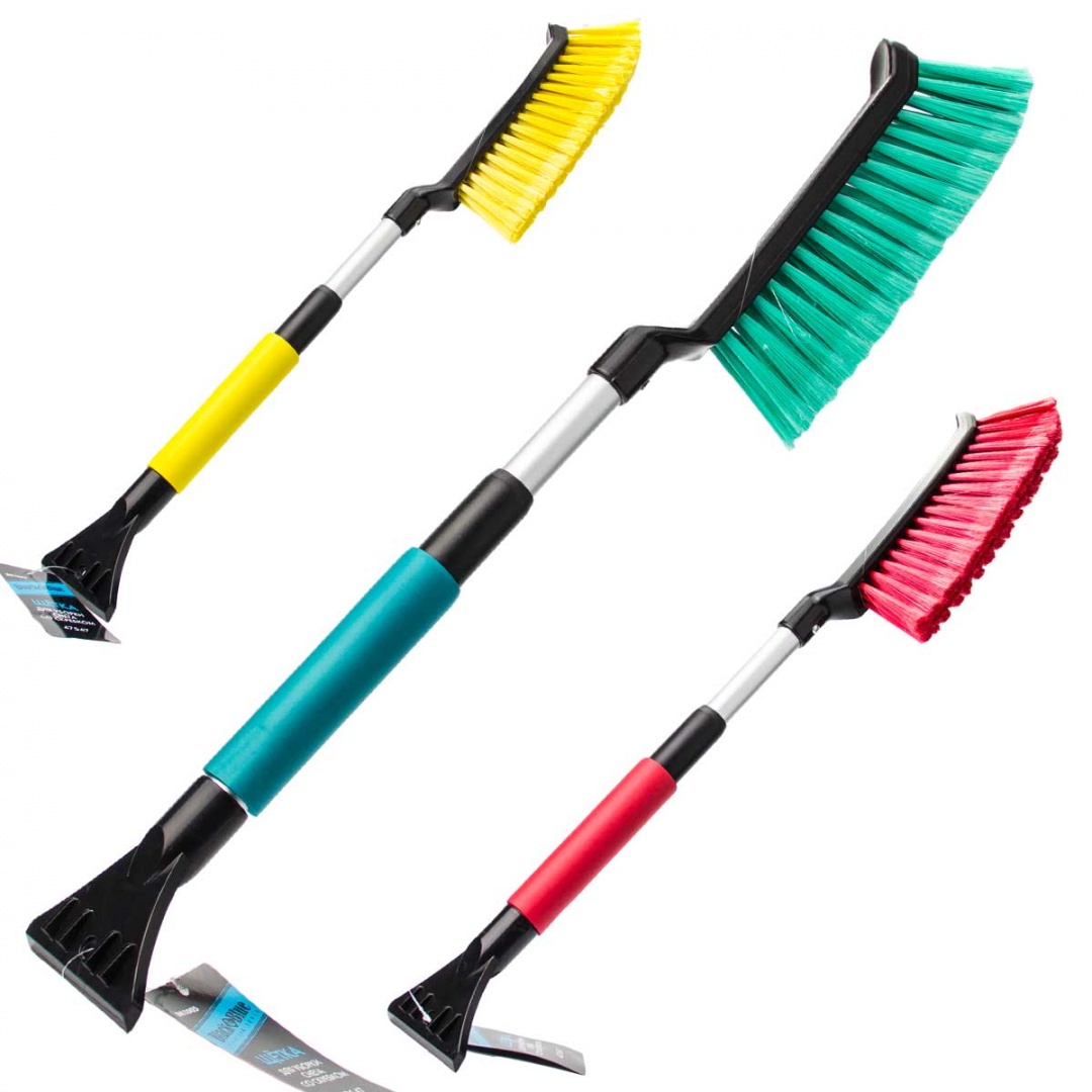 Щетка для снега cо скребком "Black&Blue" BB1002, поролоновая ручка, цветная, 65см