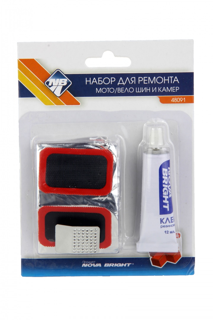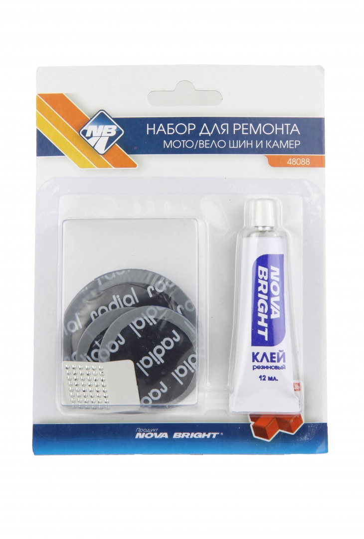 Заплаток набор для ремонта камер, шин и др. резиновых изделий "Nova Bright" (1шт х58мм, 2шт х 42мм, клей и рашпиль)