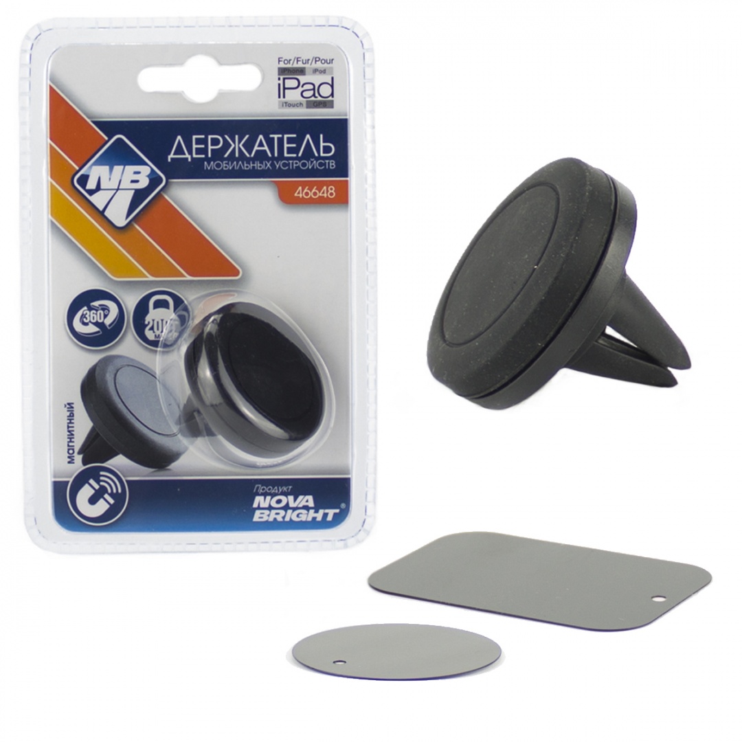 Держатель моб. устройств "Nova Bright" магнитный (круглый) на дефлектор обдува