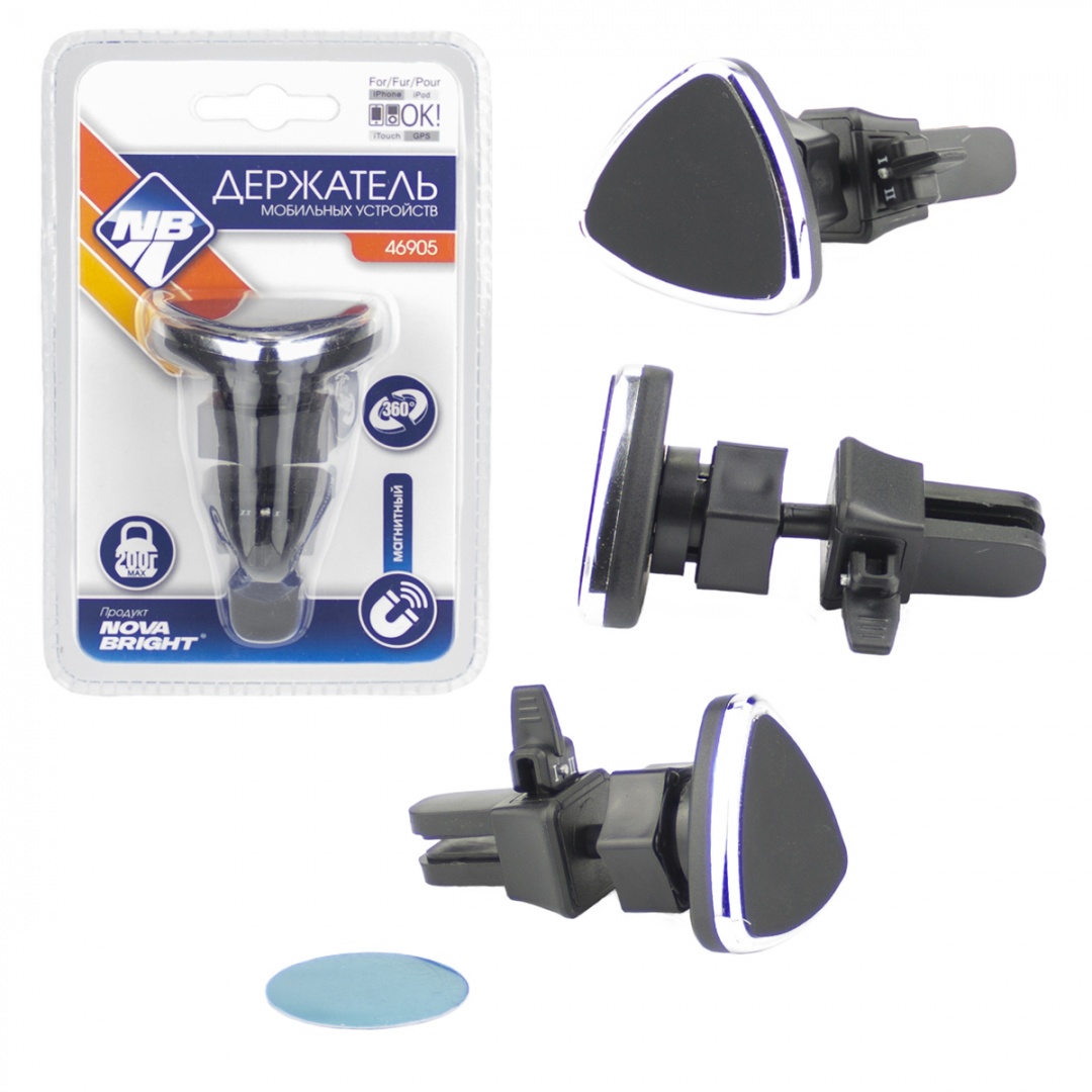 Держатель моб. устройств "Nova Bright" магнитный (мал. треугольный) на дефлектор обдува