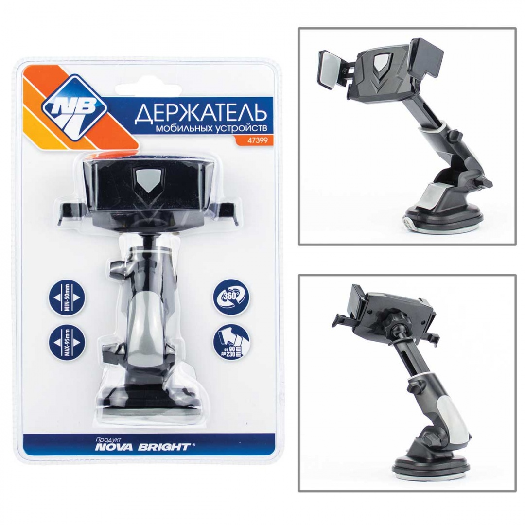 Держатель моб. устройств "Nova Bright" на силиконовой присоске, захват 60-95мм, раздвижная ножка 90-135мм
