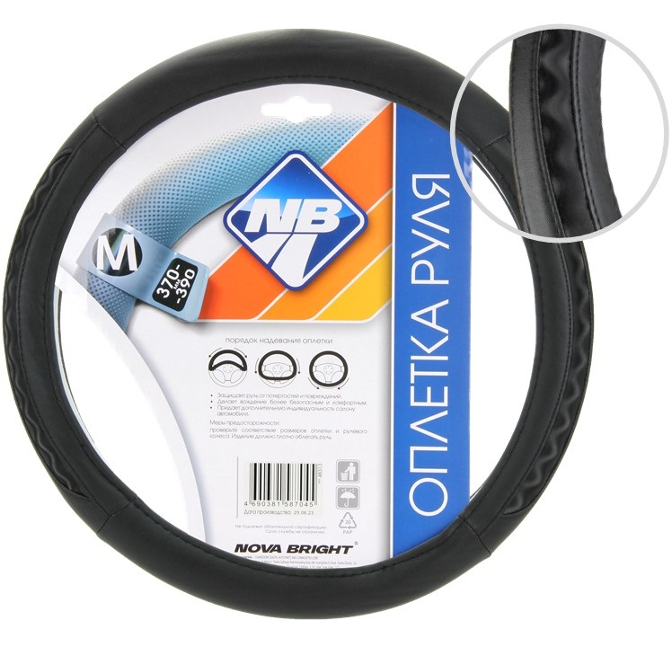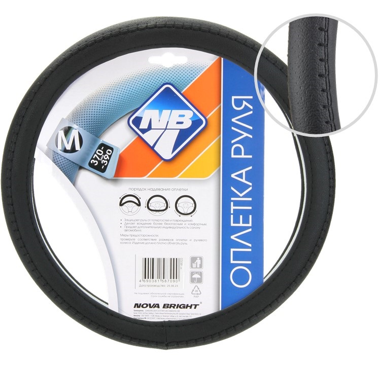 Оплетка рулевого колеса "Nova Bright" (M) экокожа, черная перфорированная с рельефной строчкой