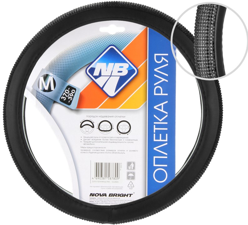 Оплетка рулевого колеса "Nova Bright" (М) экокожа, черная с черными стразами