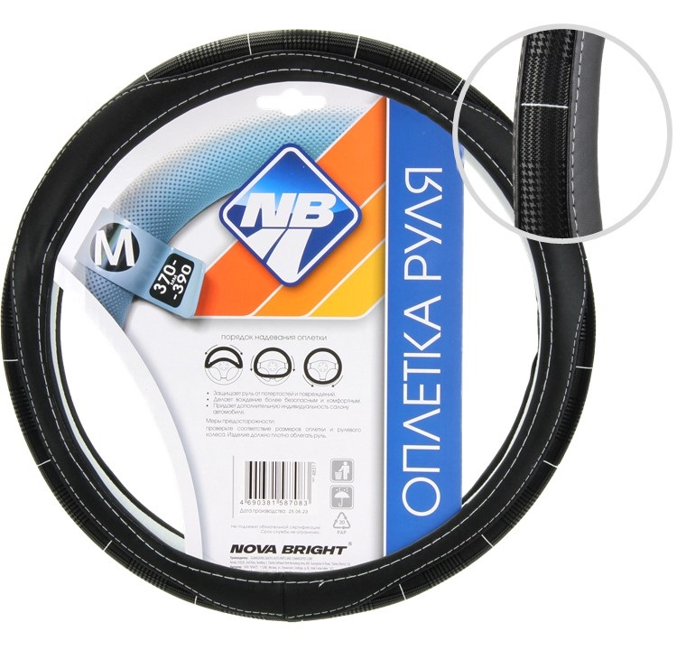 Оплетка рулевого колеса "Nova Bright" (М) экокожа, черная с декоративными вставками