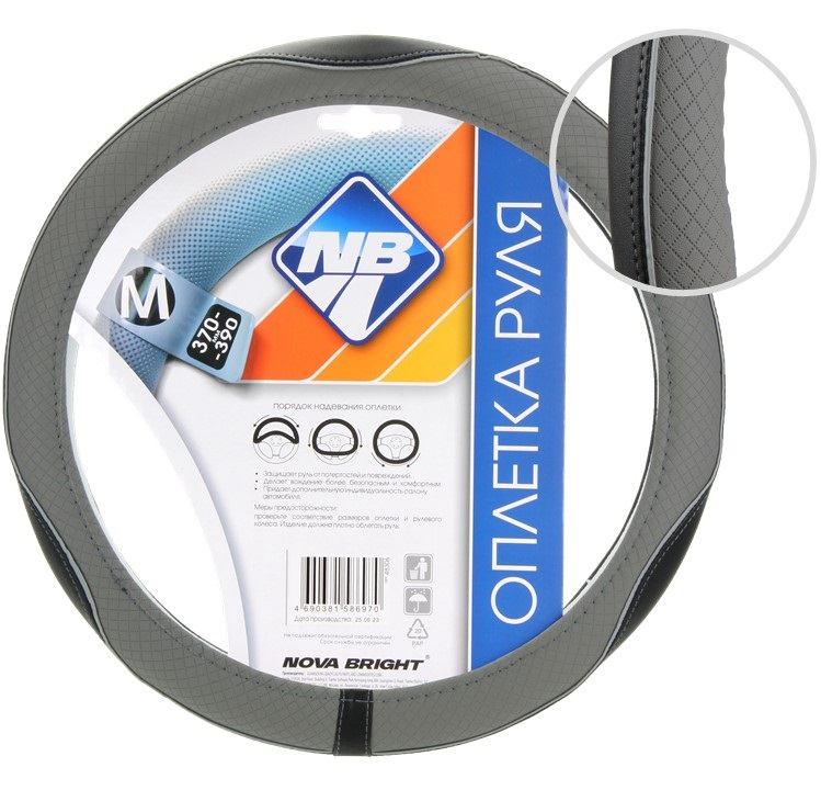 Оплетка рулевого колеса "Nova Bright" (М) экокожа, серая с фигурным тиснением