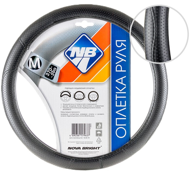 Оплетка рулевого колеса "Nova Bright" (M) экокожа, черная перфорированная