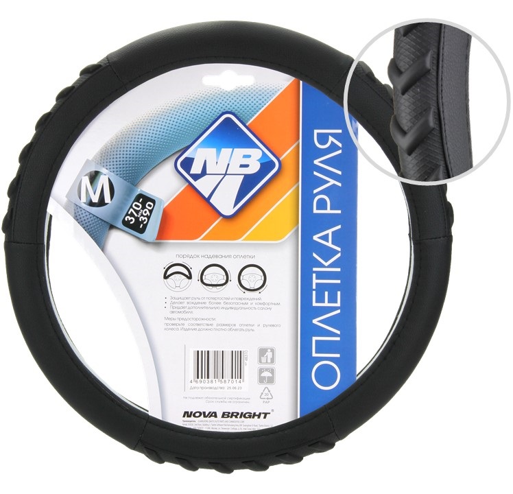 Оплетка рулевого колеса "Nova Bright" (М) экокожа, черная бескаркасная
