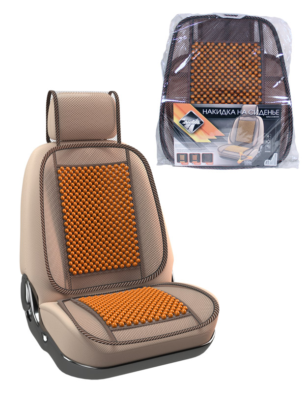 Накидка на сиденье "Nova Bright-fusion" массажная, сетчатая, с подголовником (деревянные вставки, с рисунком, бежевая) (131х51см)