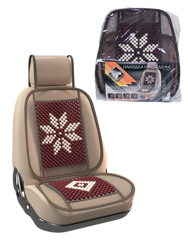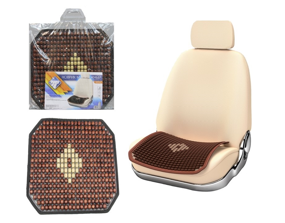 Накидка (коврик) на сидение "Nova Bright" массажная деревянная, бежевая с рисунком, противоскользящая основа