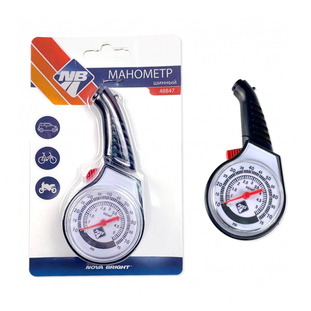 Манометр шинный "Nova Bright" в блистере (до 5 атм)