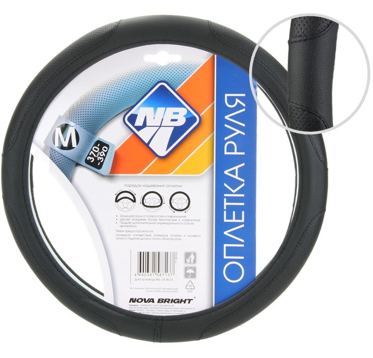 Оплетка рулевого колеса "Nova Bright" (M) экокожа, черная с перфорированными черными рельефными вставками