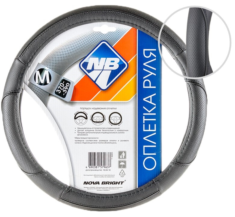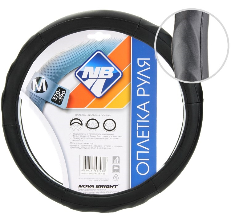 Оплетка рулевого колеса "Nova Bright" (M) экокожа, черная с рельефными вставками